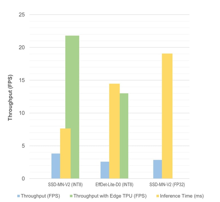 The SSD-MobileNet architecture is popular for a reason. This model has great speed while maintaining relatively good accuracy. If speed is the most crucial aspect of your application, or if it can get away with missing a few detections, then I recommend using this model. The low accuracy can be improved by using a larger training dataset.
