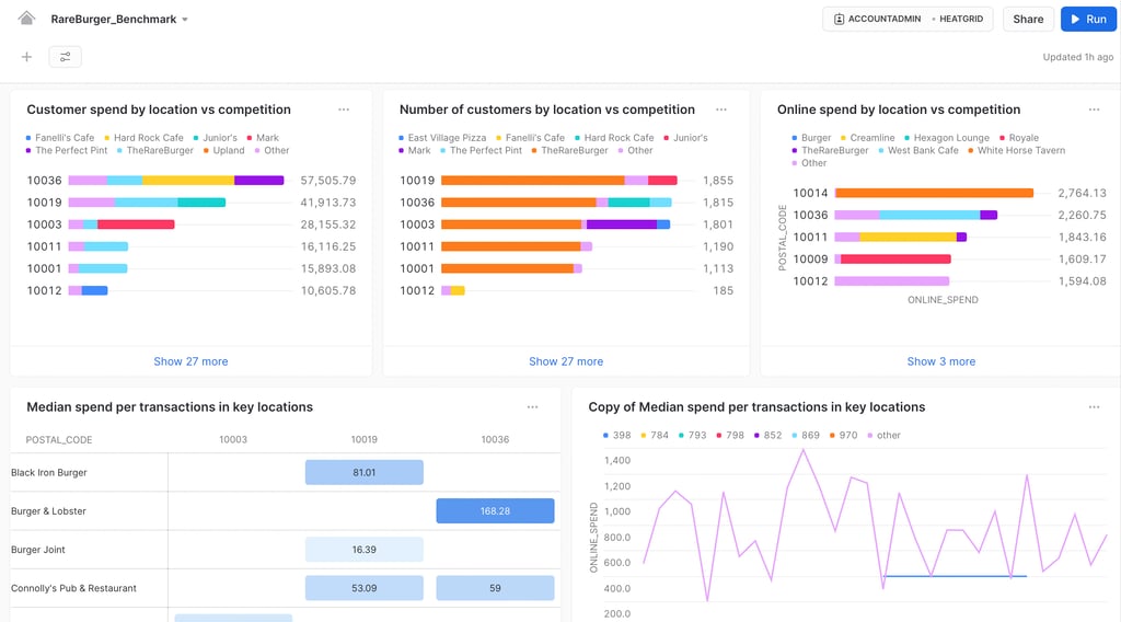 Create a dashboard to analyze your company's market share and benchmark it against major competitors
